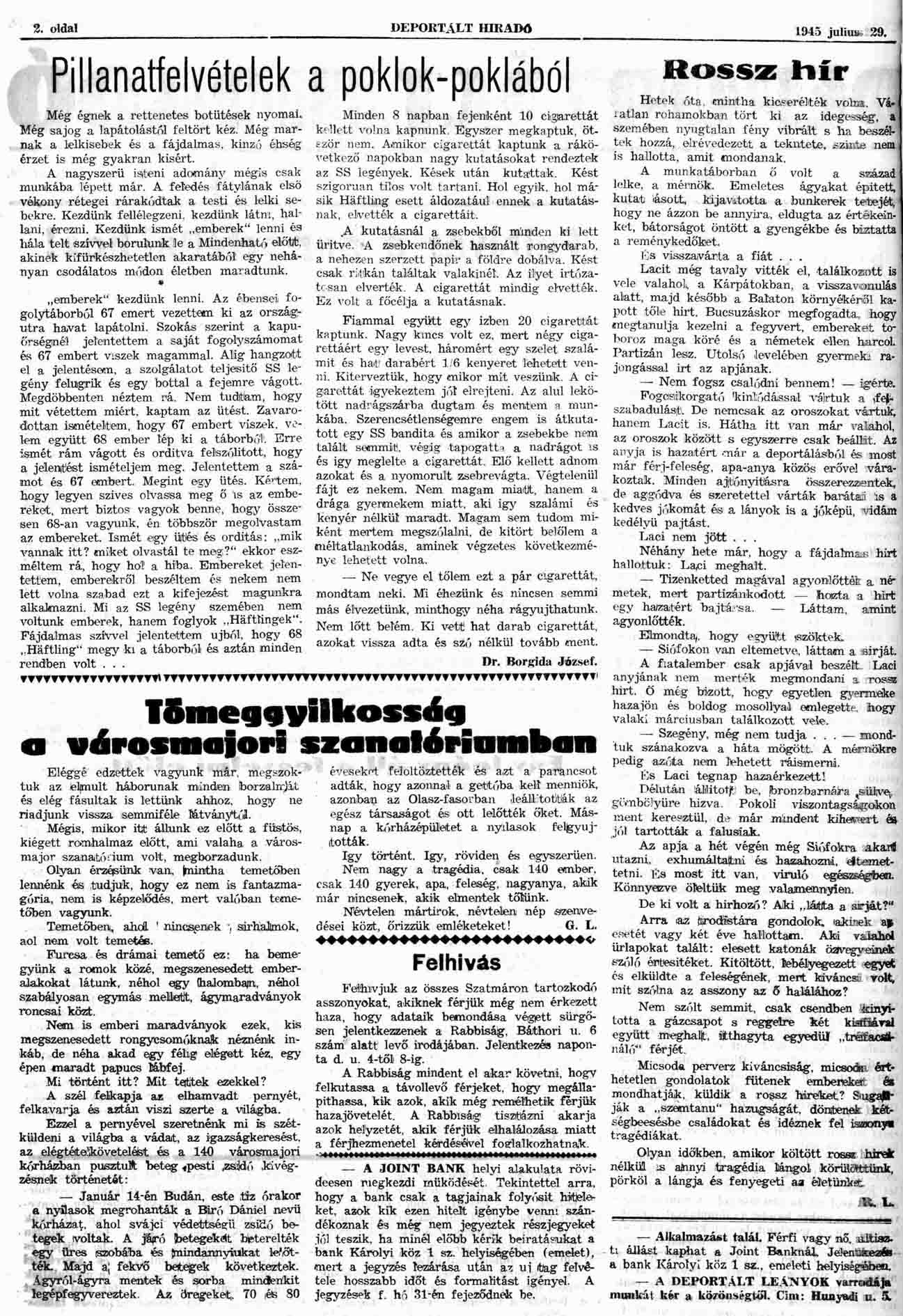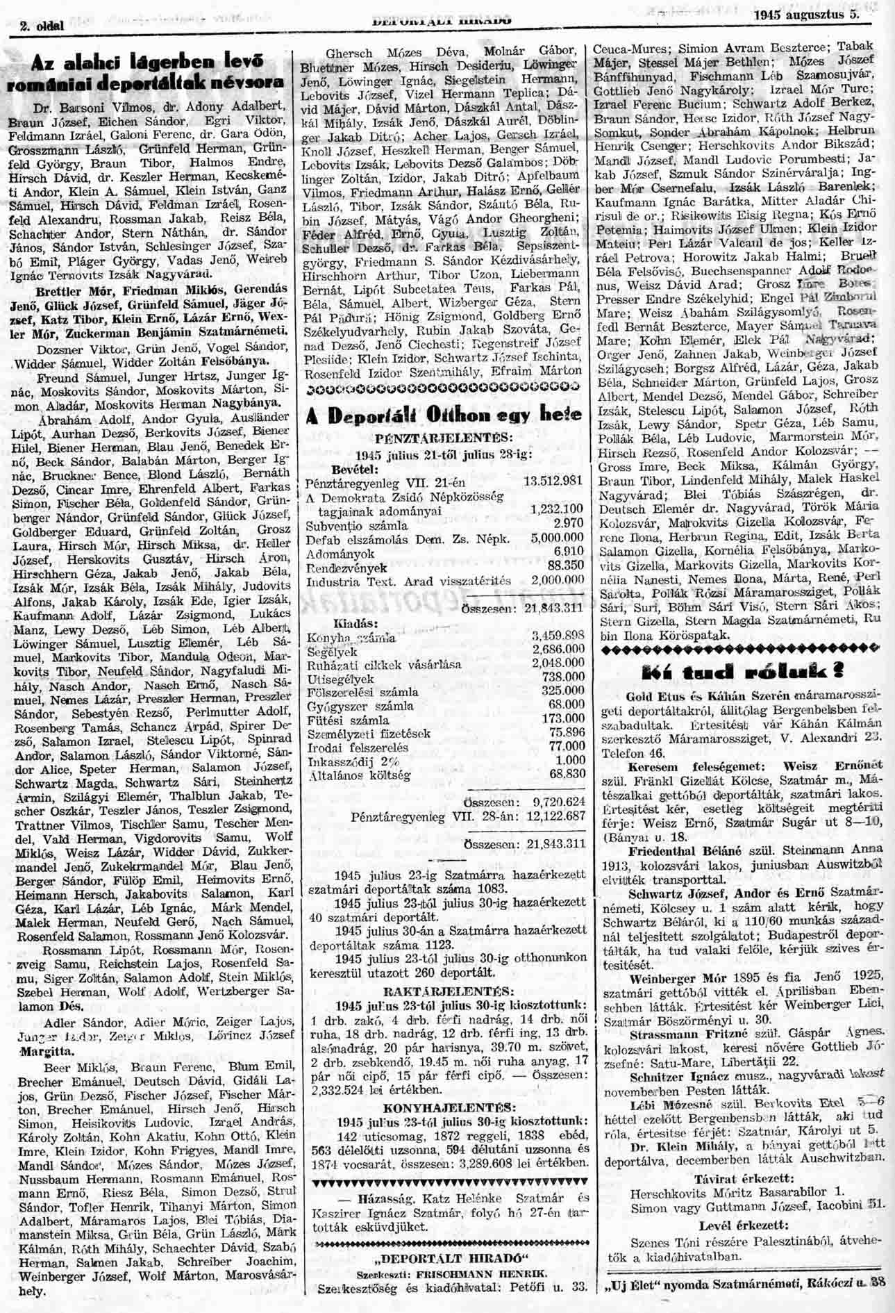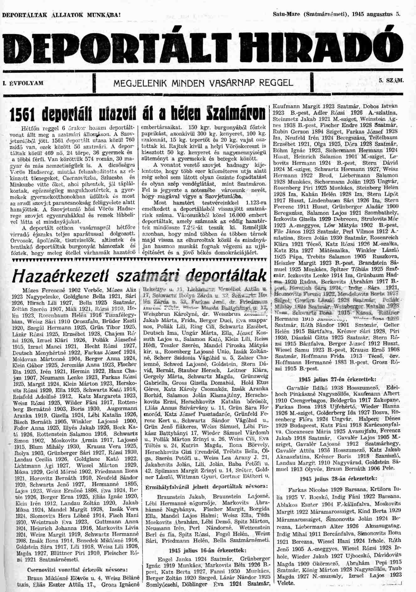 Deportált Hiradó es Szabad Élet